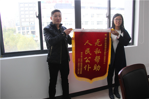 国网丽水供电公司给市代办中心赠送锦旗