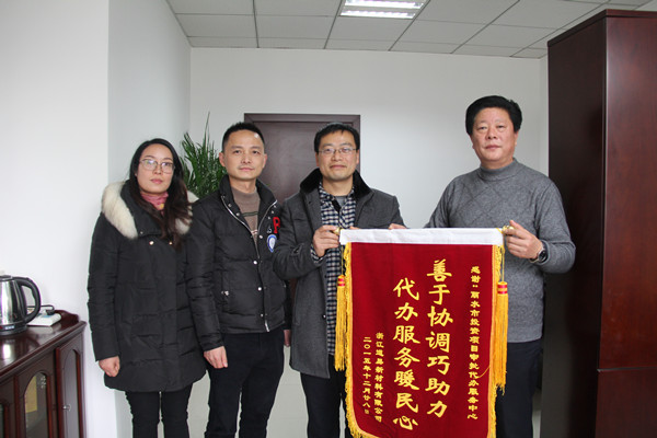 浙江道易新材料有限公司给市代办中心赠送锦旗